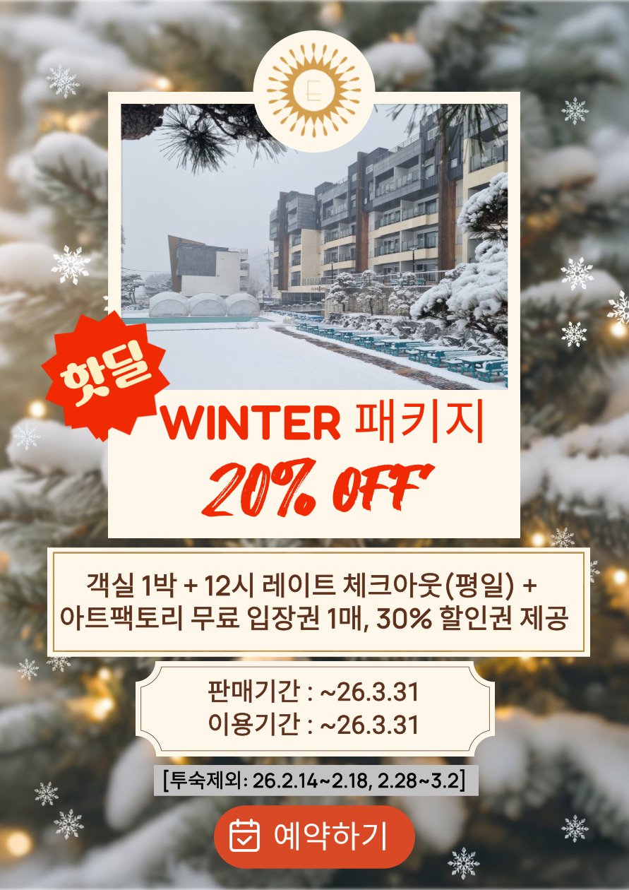 [ 2026 핫딜 ] WINTER SALE 페이지 정보 작성자 엘리야리조트 작성일26-02-03 17:27 조회75회 댓글0건 관련링크 이전글 다음글 목록 본문 **문의사항은 예약실(032-937-5921)로 연락주세요.** 댓글목록 등록된 댓글이 없습니다. 이전글 다음글 목록